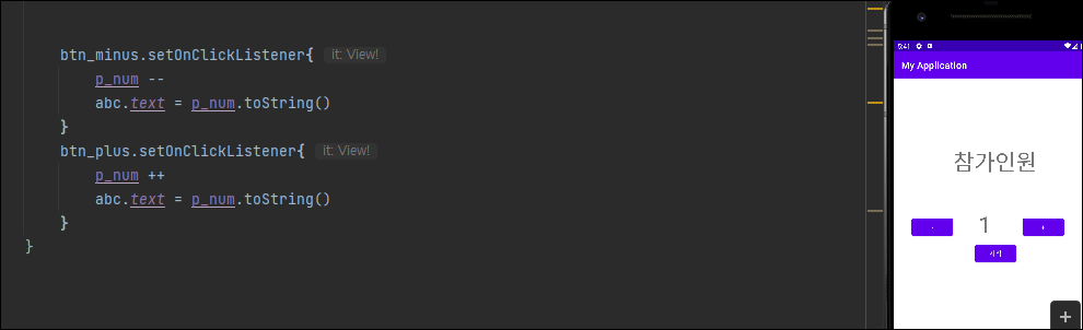 버튼은 2개 btn_mius와 btn_plus로 지정을 했죠.