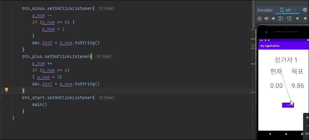 버튼에 이름을 정해주고, val함수까지 집어넣어 봅시다.