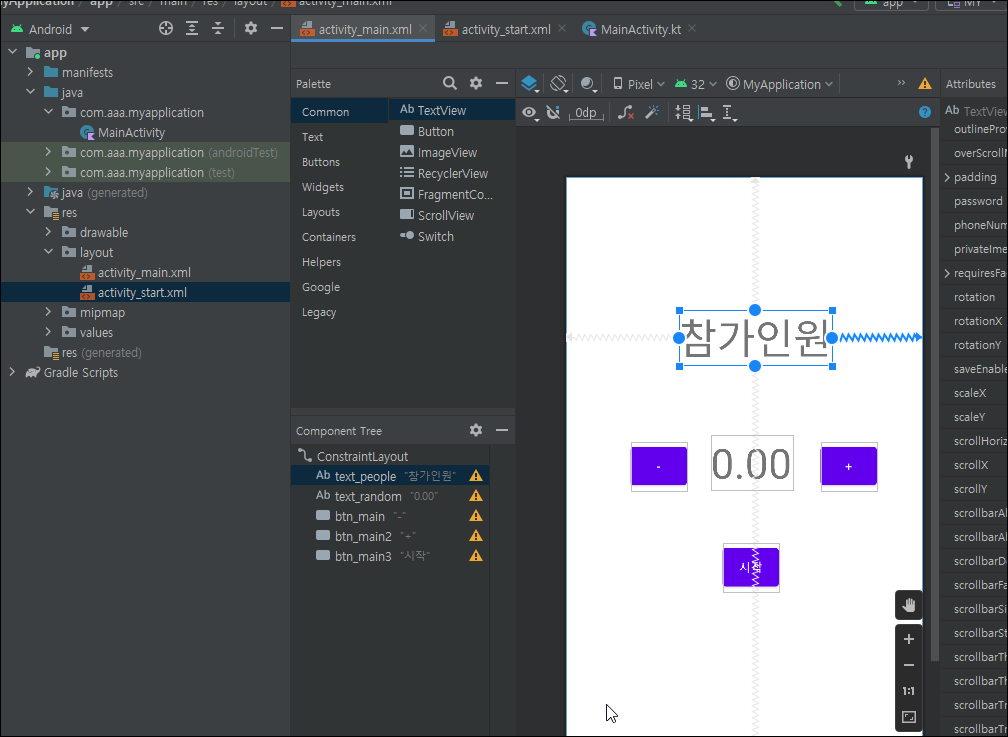 저번에는 어플에 글을 쓰고, 제한조건 레이아웃으로, 글을 가운데 정렬까지 해봤습니다. 오늘은 위젯끼리의 위치를 조정해보겠습니다. 위젯 위치를 변경하는 것에 대해서도 조금 더 자세히 해