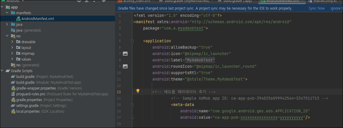 | 구글 애드몹 배너 광고 달기(앱만들기 완성) (0) | 2022.04.12 |