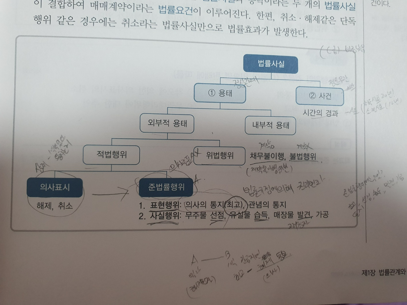 준법률 행위 표현행위 (최고, 관념의 통지), 사실행위(무주물 선점, 유실물 습득, 매장물 발견, 가공) 이 있다.
