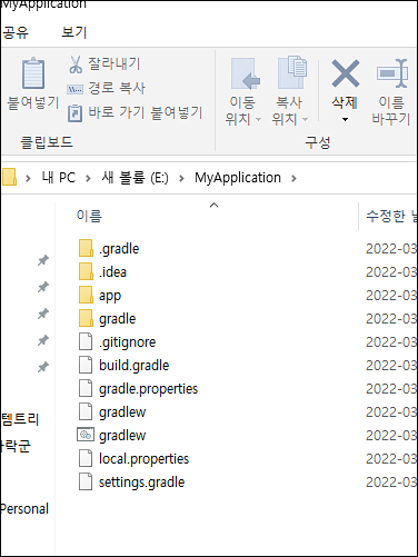 e드라이브 MyApplication 폴더에 있는 것입니다. 작업을 하고, 이곳에 저장이 되는 것이죠.