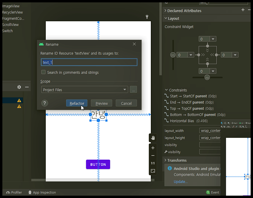 activity_main.xml 파일에서 아이디를 봐보죠. 변경도 해주겠습니다.