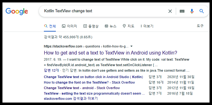 붙여서 Kotlin TextView change text 를 넣어주세요.