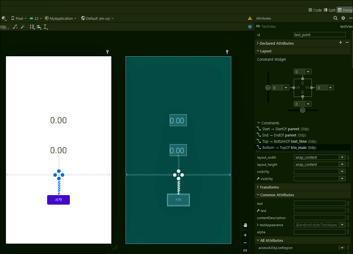 저번에는 어플에 글을 쓰고, 제한조건 레이아웃으로, 글을 가운데 정렬까지 해봤습니다. 오늘은 위젯끼리의 위치를 조정해보겠습니다. 위젯 위치를 변경하는 것에 대해서도 조금 더 자세히 해