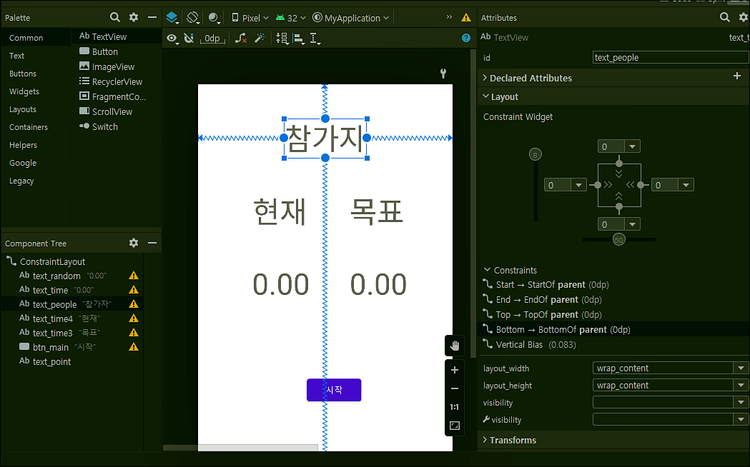액티비티 메인에서 참가자 텍스트뷰를 만들어줍니다.