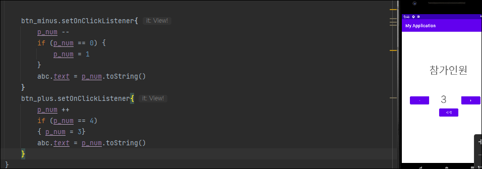 버튼은 2개 btn_mius와 btn_plus로 지정을 했죠.
